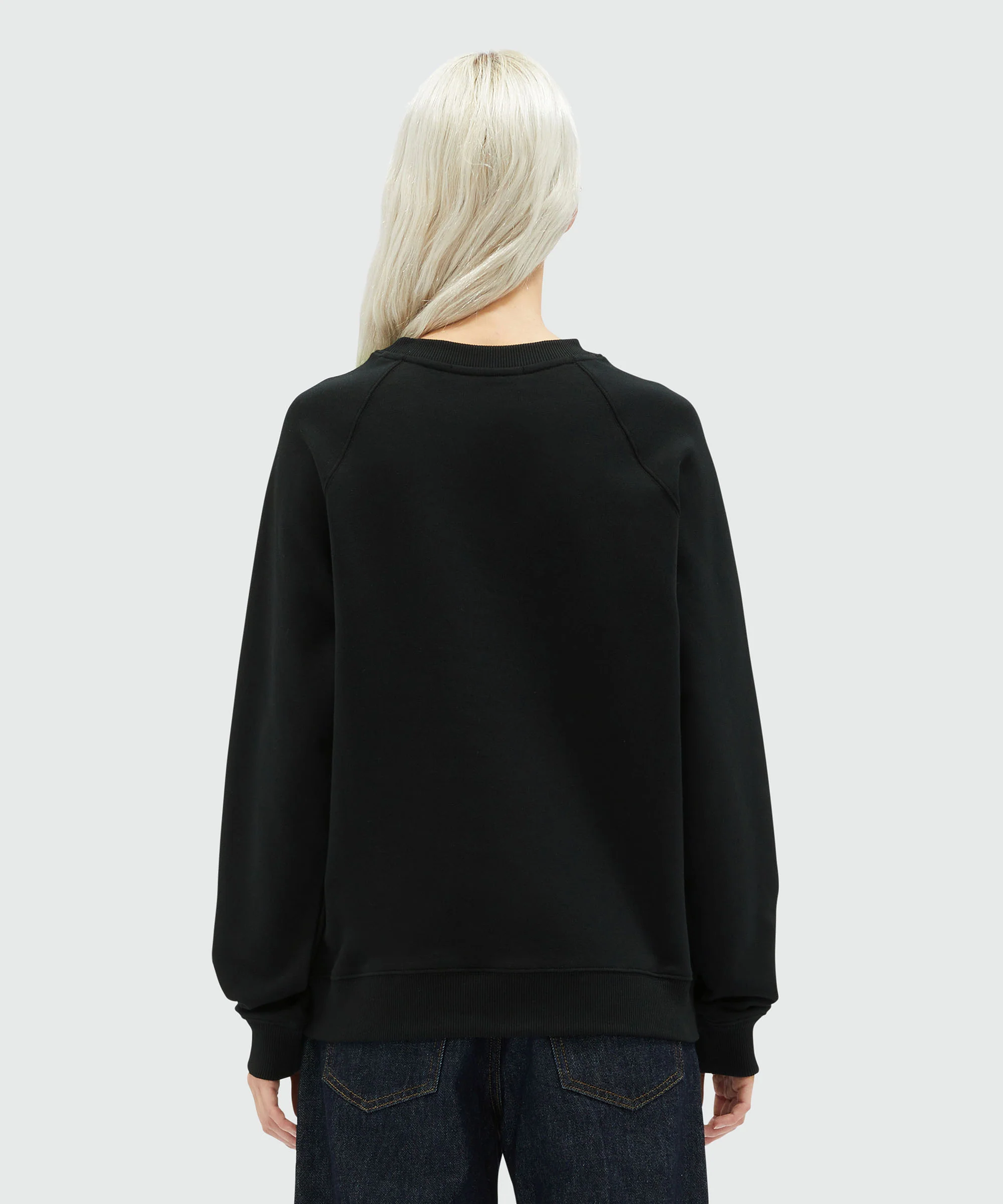 Solid color jersey cotton crewneck sweatshirt with mirco logo printed on the front. Ribbed collar, cuffs and bottom. Regular fit.