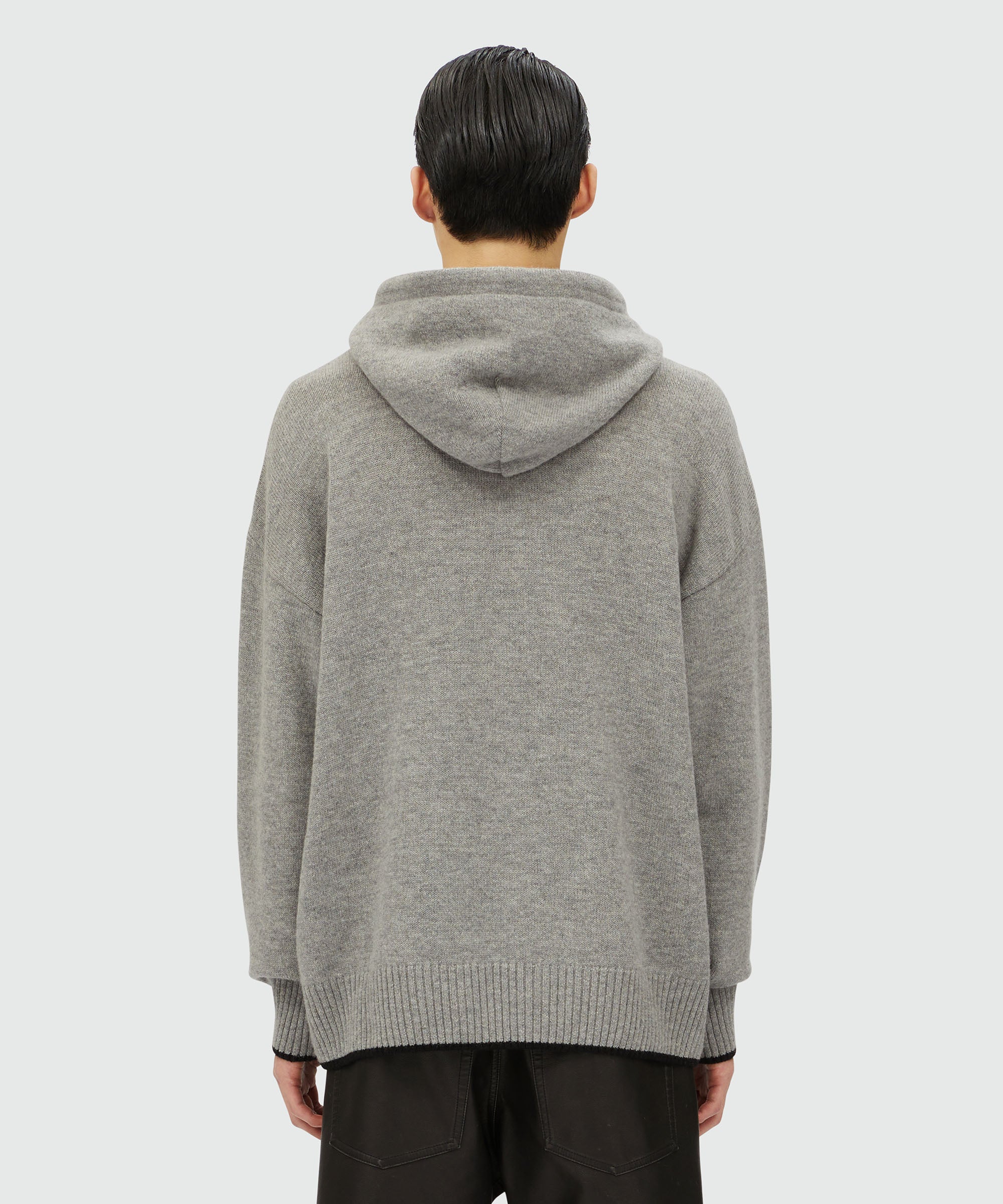 "TheMwave" the new distinctive MSGM signature line introduced by Massimo Giorgetti, symbol of creativity, innovation and freedom of expression. Blended cashmere yarn sweater with contrasting color "TheMwave" patch sewn on the chest. Hood with drawstring, pouch pocket, ribbed cuffs and bottom. Oversize fit.