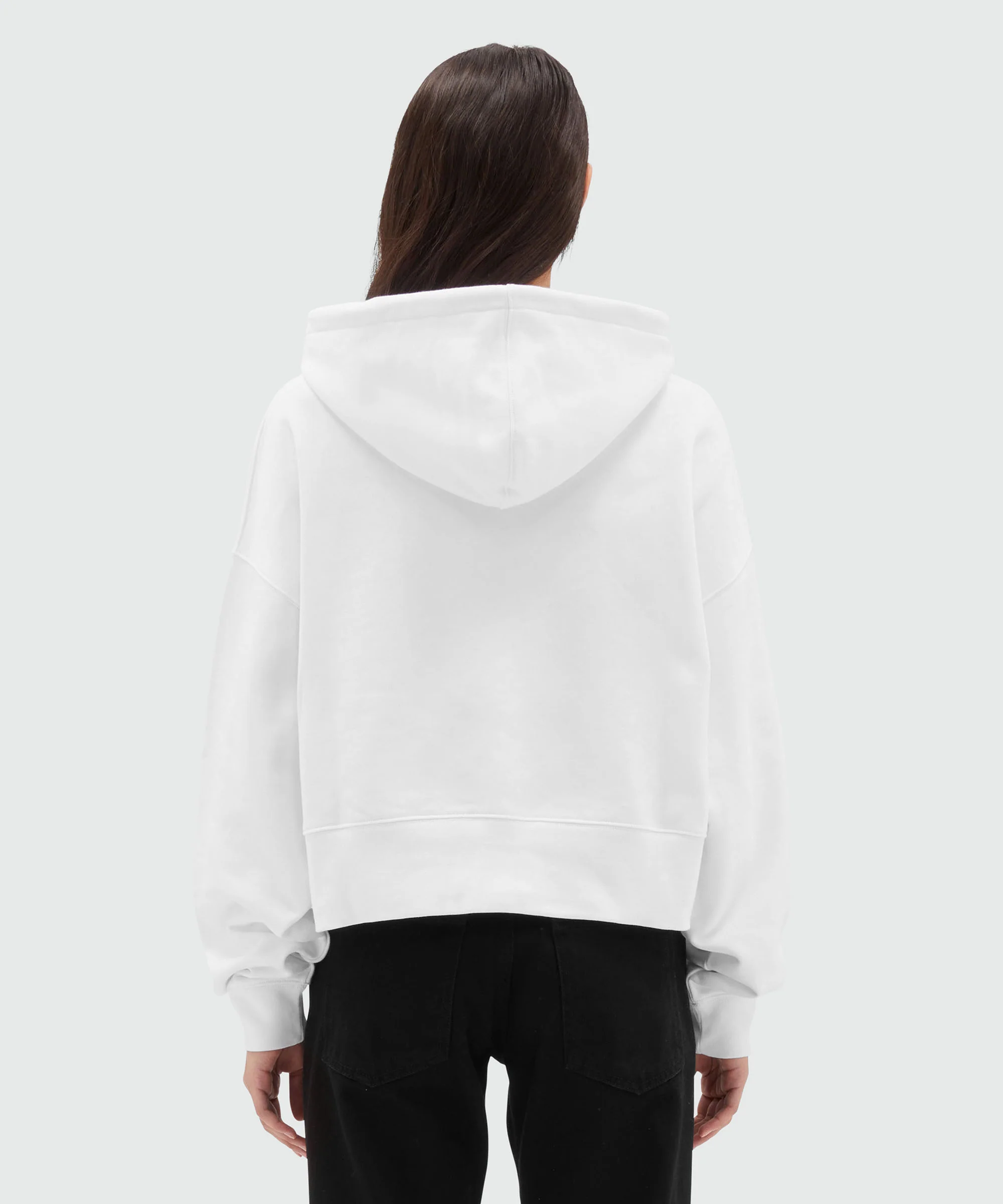 The short cotton sweatshirt is a solid colour garment with long sleeves. The sweatshirt features an adjustable drawstring hood and a micro MSGM logo printed on the front in contrasting cotton. Ribbed bottom hem and cuffs. The interior is cotton gauze. The soft design allows for a Regular fit.