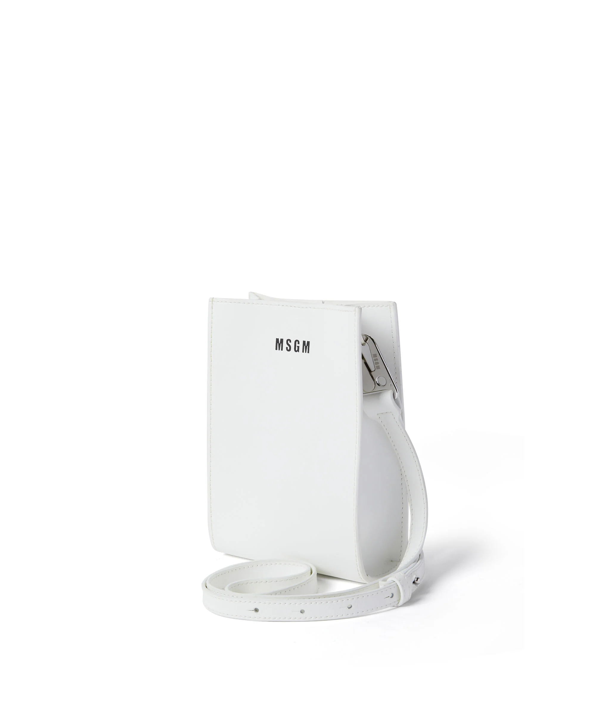 Mini tote bag in eco leather with micro-logo on the front and adjustable shoulder strap with clasps.