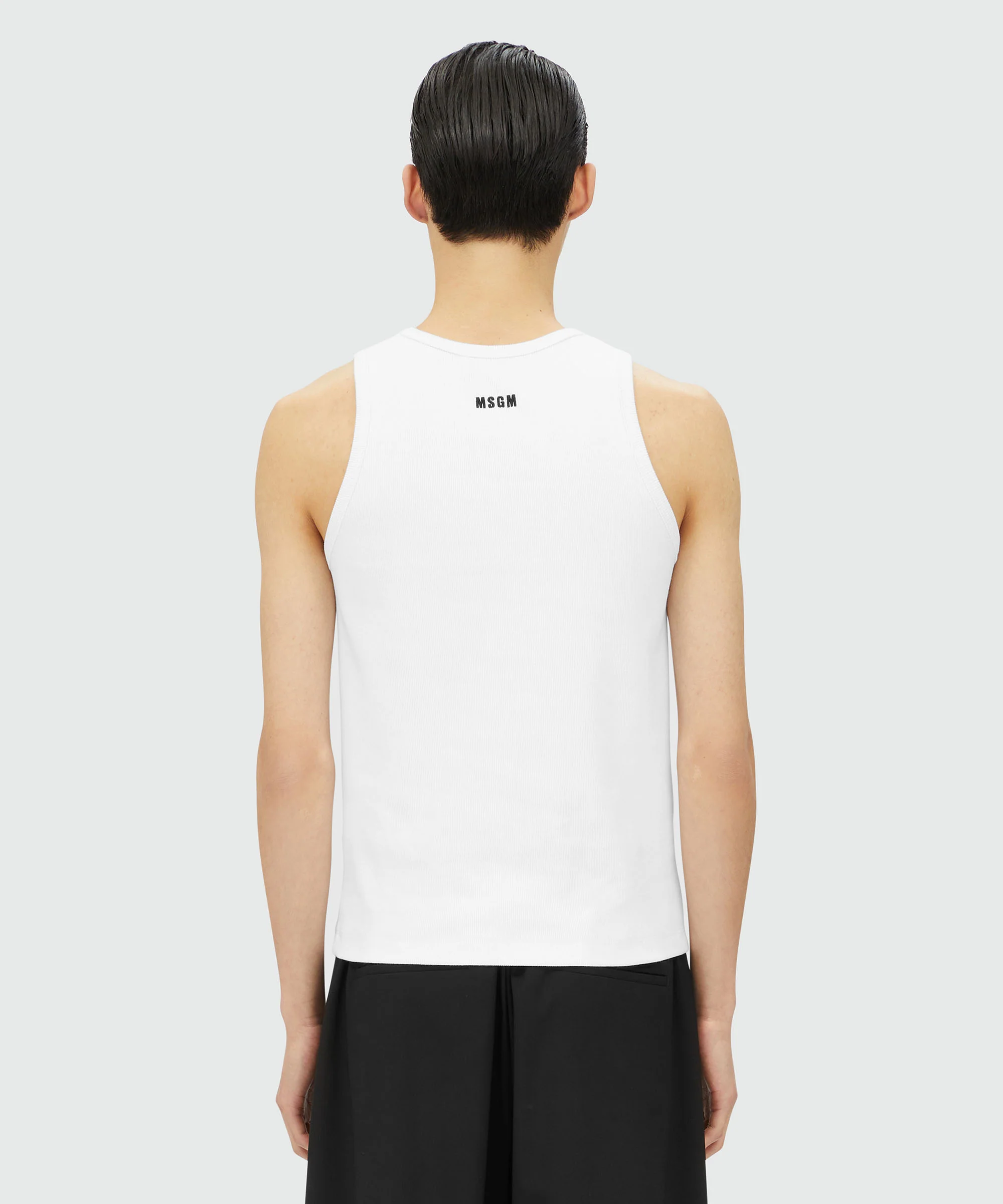 "TheMwave" the new distinctive MSGM signature line introduced by Massimo Giorgetti, symbol of creativity, innovation and freedom of expression. Ribbed jersey cotton tank top with contrasting color "TheMwave"patch sewn on the chest. Slim fit.