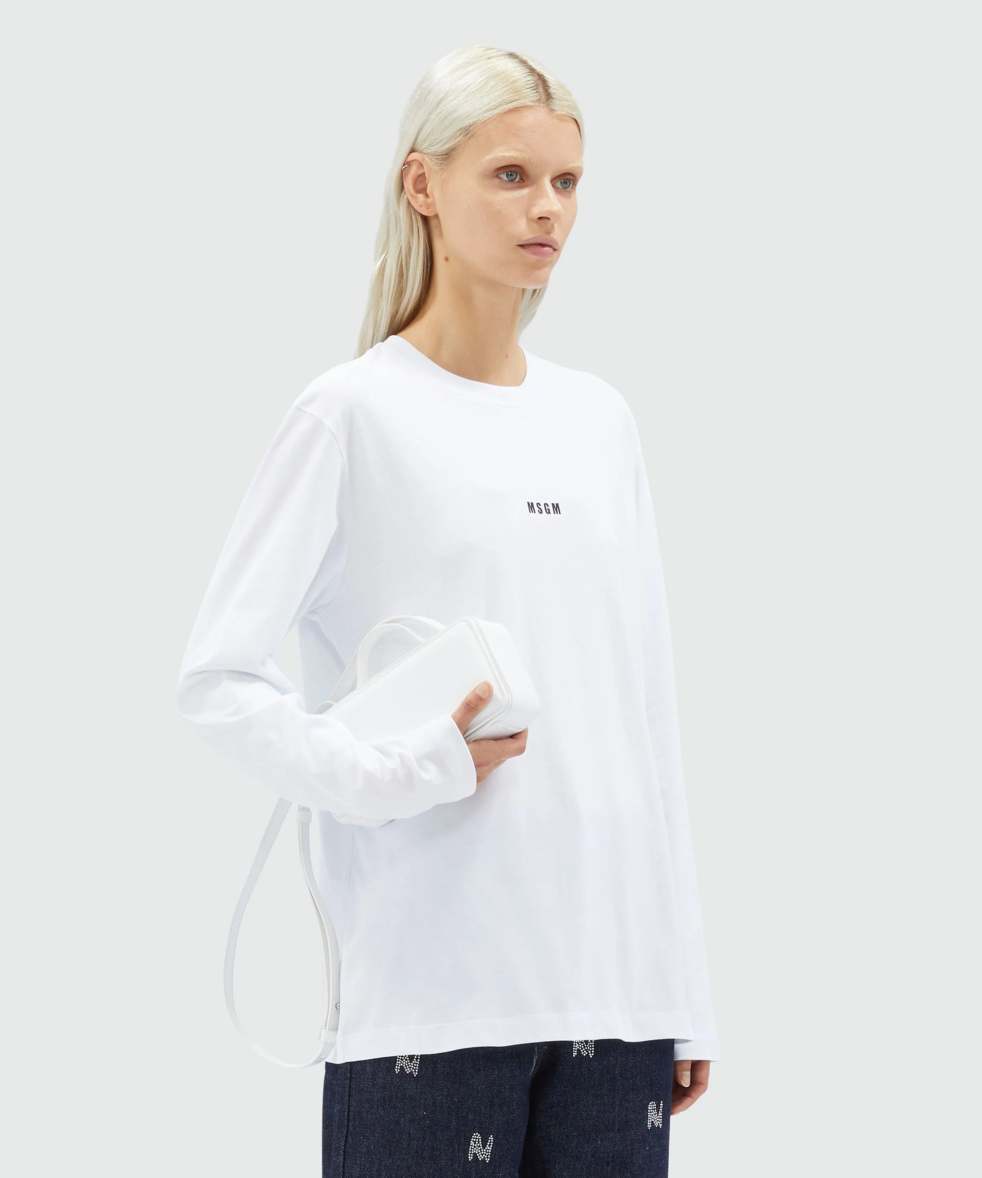 Solid color jersey cotton T-shirt with contrasting color micro logo print. Crewneck and long sleeves. Regular fit.